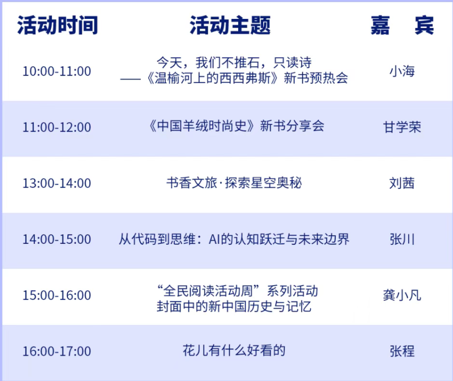 ✅实体书店联动展场(4.18-5.17):全市2000 家实体书店同步参与,开展惠民购书与文化活动