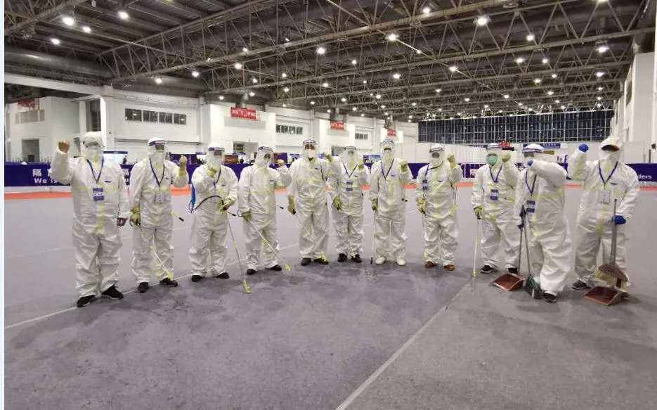“境外返京人员,到了新国展,就有松了一口气的感觉,特别有安全感。我们要确保万无一失,让回家的路更温馨。”保洁、消杀也不间断的在新国展场内上演。凌晨4时,大龙控股的吕银海、郭明纲、张晓明等人,坚持一批一次不间断实时保洁、消杀,每天坚持到转运完最后一批人员。