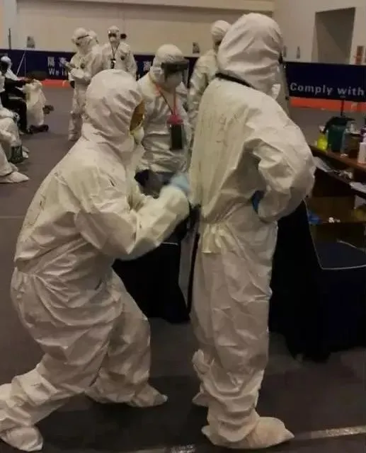 累的时候,顺义疾控中心的李征、空港经济开发公司的桑利松、顺义市场监管局的王军等人只能插空,于凌晨4时坐在地上或躺在折叠床上短暂的休息会儿。看着他们坐在地上睡着的样子,让人又心疼又动容。