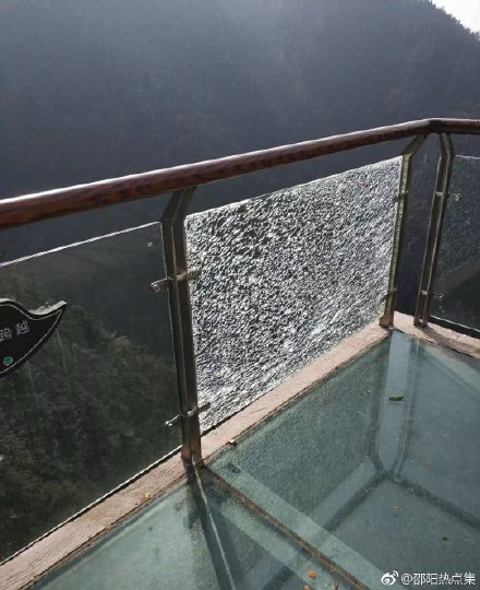 2 月 19 日,有邵阳武冈市一居民反映,在其前往当地云山景区观光时,经过景区内的玻璃栈道时发现,此玻璃栈道处护栏一块玻璃出现了网状裂痕。