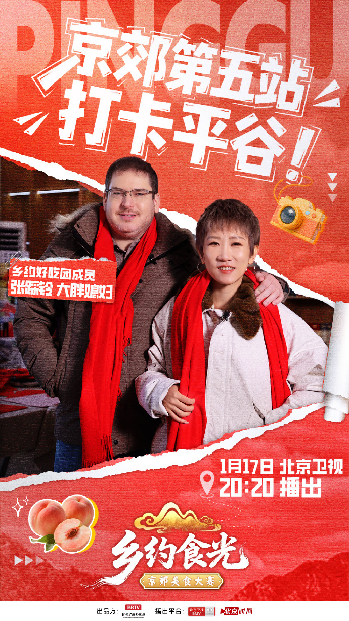 平谷的年味、咖啡香、科技感和自然气息都在线!玥小玥、于震、张踩铃、翟子路、聂诗芸带你解锁京郊新玩法~每周六北京时间APP直播,1月17日20:20北京卫视播出,一起趣游平谷!