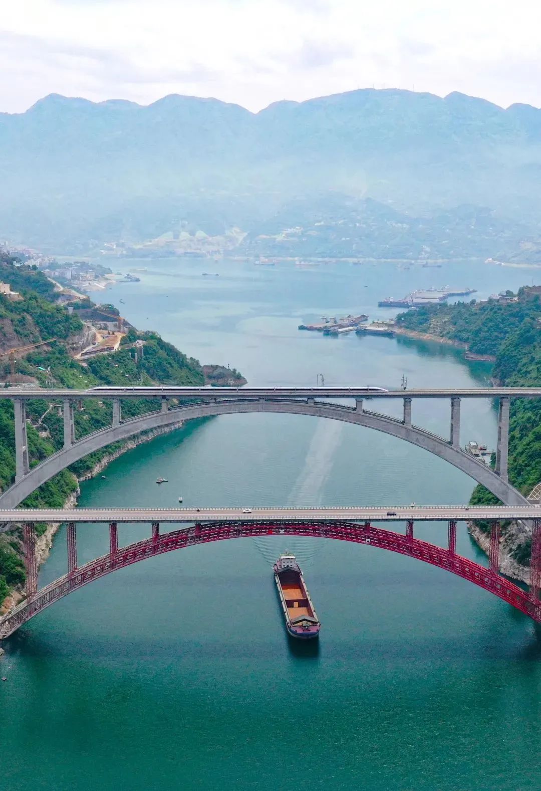 复兴号动车组驶过渝怀铁路长寿长江大桥。张志力 摄