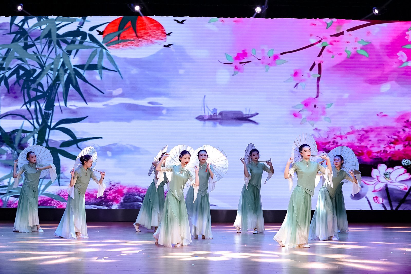 北京第一实验小学红莲分校的《诗话四季》让学生在情境中感受诗词之美,徜徉四季古诗词,品读千年风雅韵;北师大附属实验中学朝阳分校的《烟雨江南》则通过舞蹈、音乐与原创诗词的融合,带观众领略江南文化的诗情画意;北师大附属实验中学顺义学校的《大国小家——-<诗楚·鹿鸣><诗经·蓼莪>》诗经吟唱,更以古韵新声展现家国情怀;北师大附属实验中学大兴分校朗诵《读中国》以磅礴气势抒发文化自信,充分体现了“从书本到舞台”的教育创新。