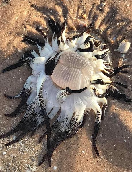 这种海葵生活在澳大利亚西部沿海的热带水域,可长到50厘米。它们通常会呈现出多种颜色,关于图片上的这只海葵,Reddit的用户猜测它的颜色可能被阳光漂白了。此外,它还长有一种刺,带剧毒,一旦人类触碰了它,便会极其痛苦,需要数月才能痊愈。