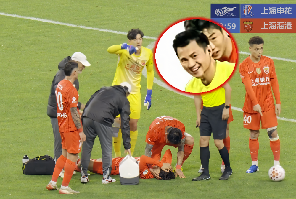裁判面对腿伤转“脑震荡”,忍不住笑了。