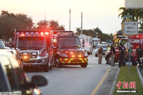 资料图:当地时间2月14日下午2点25分左右,美国佛罗里达州南部帕克兰一所高中发生枪击案