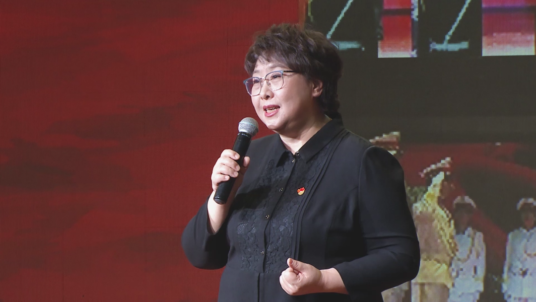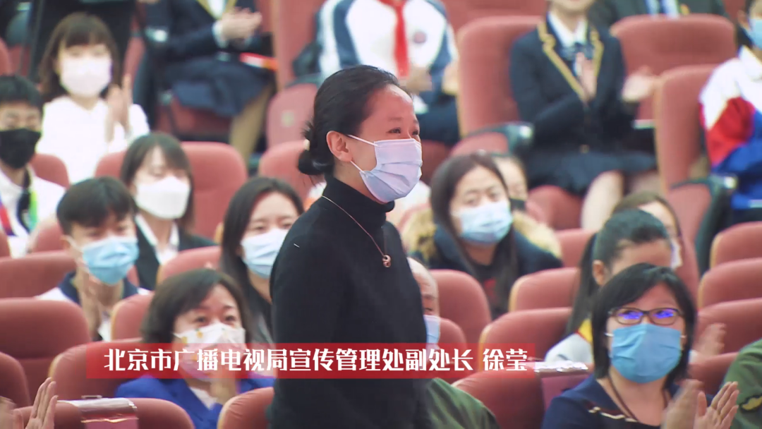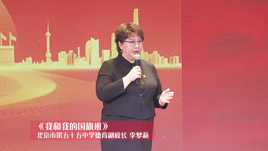 接下来,北京市东城区教育委员会副主任尤娜,代表东城区委教育工委和东城区教委致辞。她回顾了中华民族复兴历程中,先辈们对祖国表达热爱的不同方式,与同学们探讨了国旗与爱国这个涵盖了深度和广度的话题。
