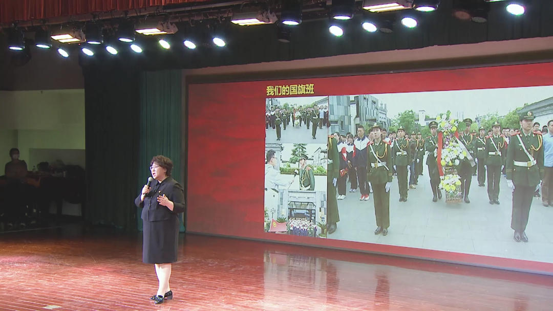 她鼓励同学们,不断追寻并探索国旗背后的意义与爱国的方式,并启发同学们,思考与解答这些问题,将个人梦融入国家梦,把个人理想追求融入国家和民族事业中,紧跟时代的脉搏,与祖国同频共振。