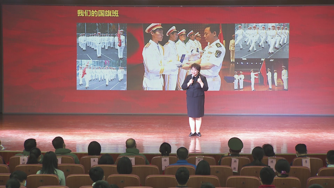 宋中队长深情地讲述,在澳门回归仪式中,他曾是国旗护卫队的一员。看到冉冉升起的红旗,他激动地留下泪水。他告诉同学们,五星红旗升起,代表主权回归和人民的尊严。
