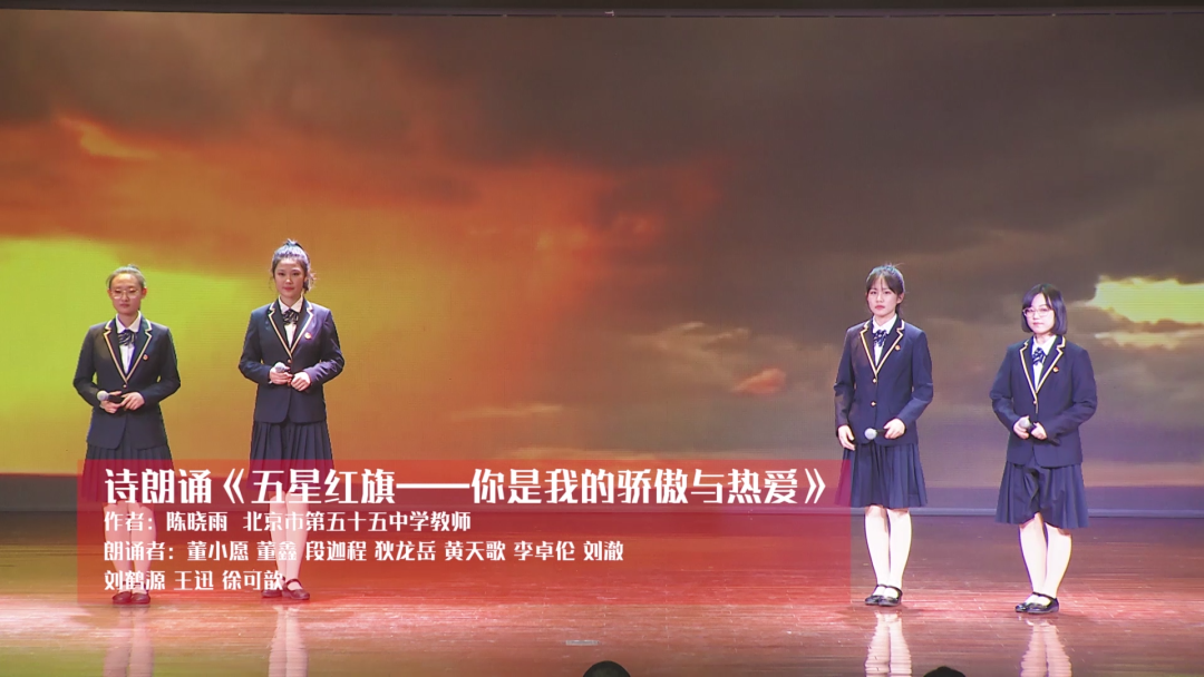 《五星红旗——你是我的骄傲与热爱》由北京第五十五中学教师陈晓雨原创,董小愿、董鑫、段迦程、狄龙岳、黄天歌、李卓伦、刘澈、刘鹤源、王迅、徐可歆朗诵。