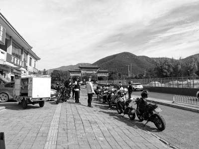 驶出高速右转东行至潭柘寺环岛,记者看到环岛周边聚集了多个摩托车队。其中,一些规模较大的车队扎堆儿停放的摩托车多达四五十辆,车手们聚在摩托车旁高声谈笑。