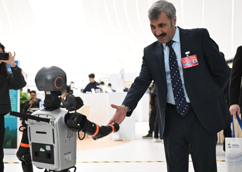 2025中关村论坛年会,与会嘉宾与机器人握手