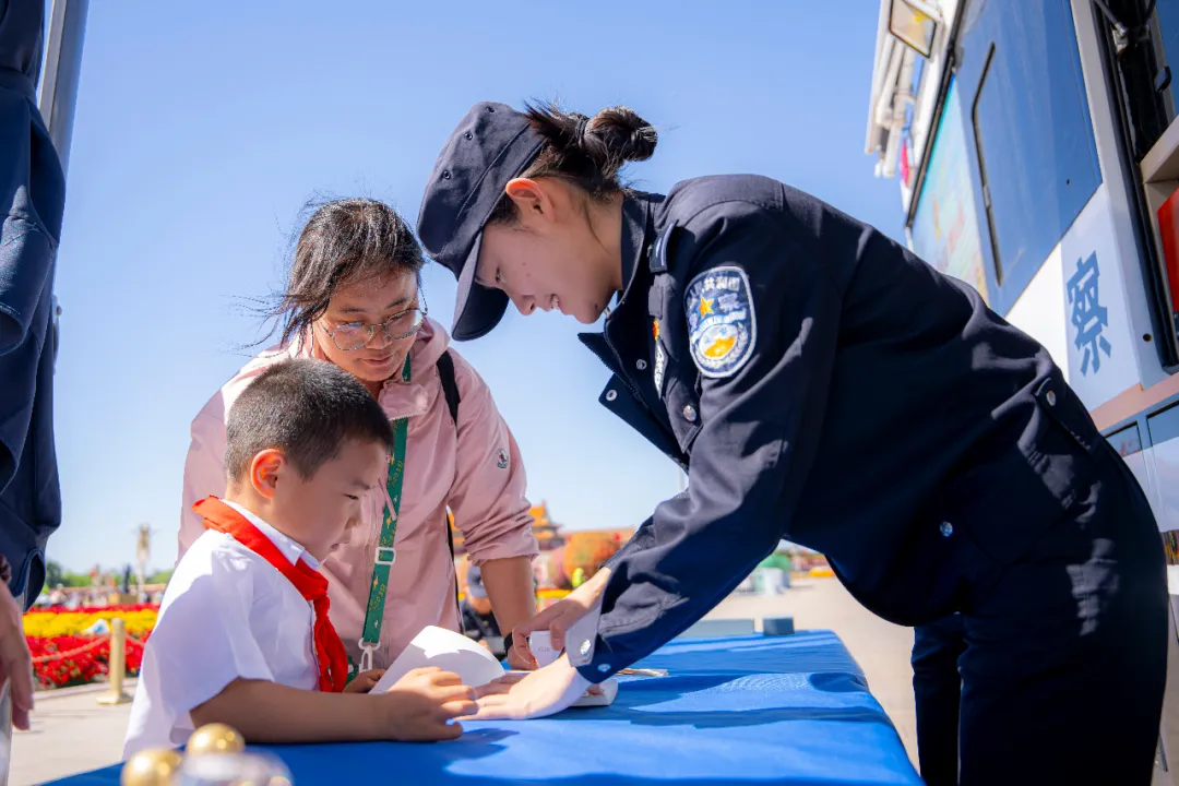 早晨的北京,天安门广场东侧的“为民服务车”准时“开启”。车内,母婴护理台上整齐摆放着消毒湿巾,急救箱里新换的退烧药还带着塑封包装;车外,值守民警将保温桶里的热水注入暖瓶,白雾在晨曦中腾起朦胧光晕。