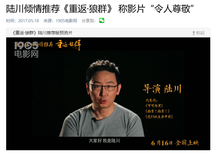 2017年,《重返·狼群》院线上映。