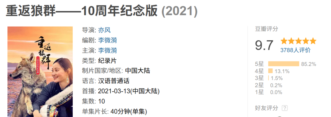 再翻一翻,发现《重返·狼群》的解说在前年就拿到了很好的数据。