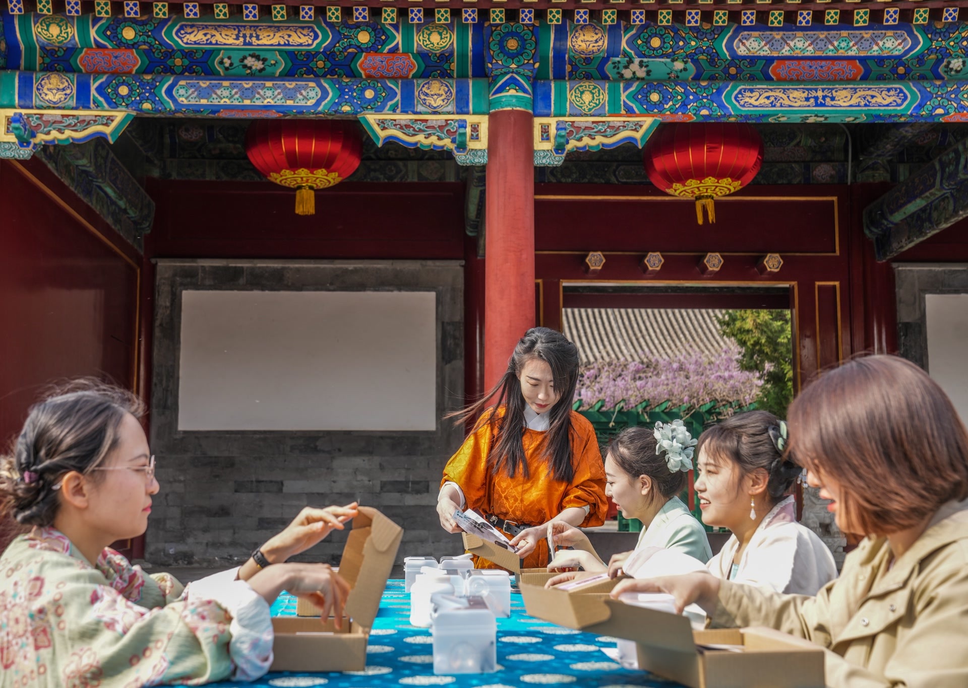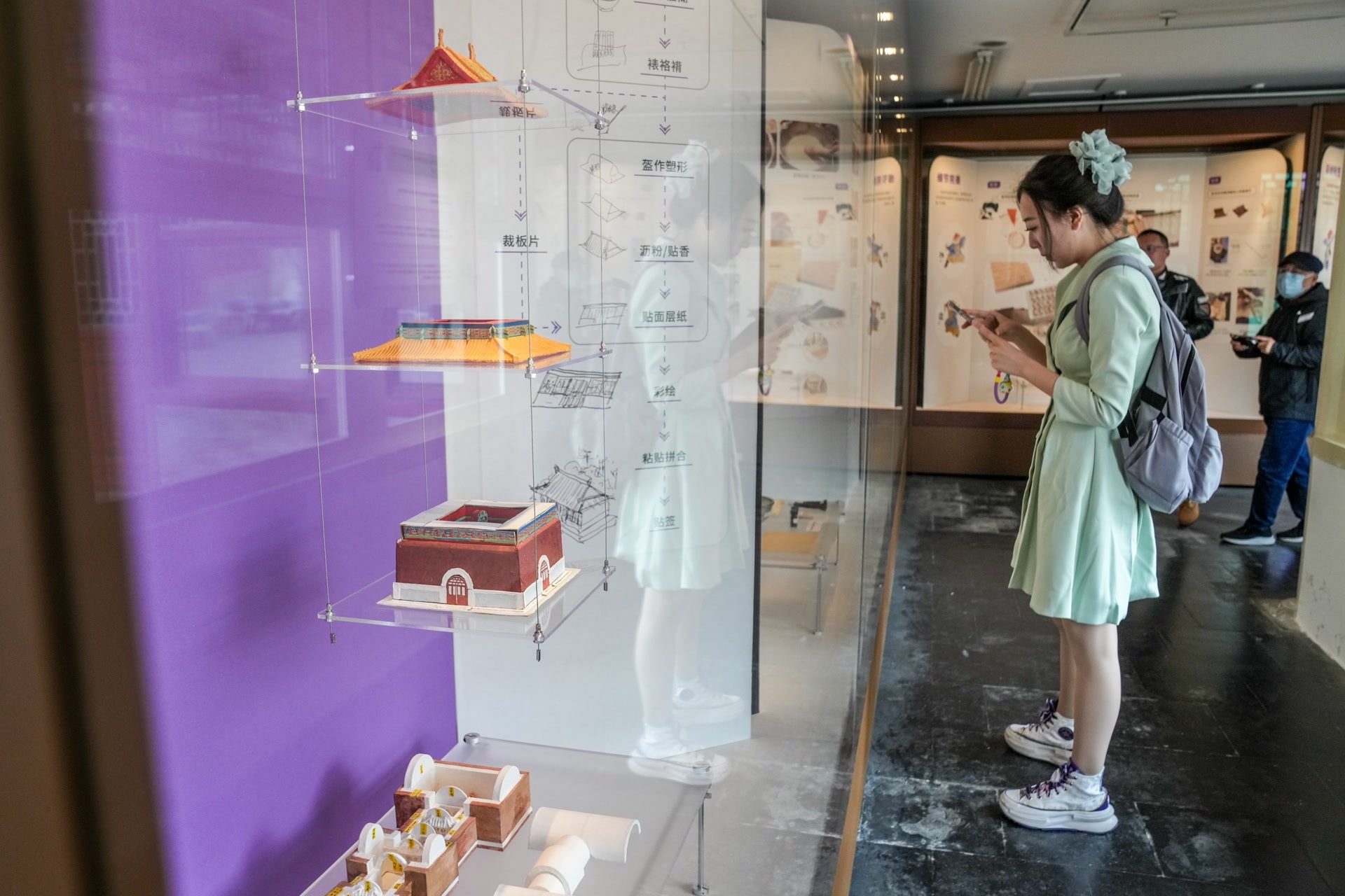4月13日,恭王府博物馆,参观者体验烫样制作。