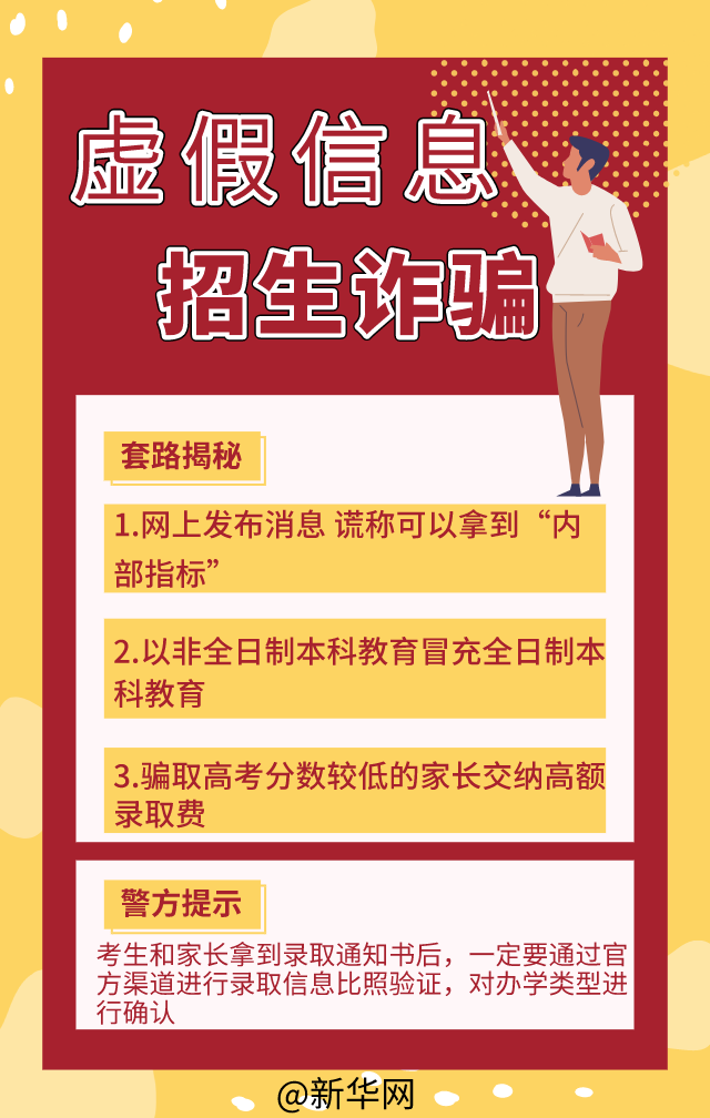 高考结束后,查询分数、选择学校、填报志愿、招生录取等一系列事情将随之而来。在这期间,一些骗子也开始跃跃欲试,设置骗局,伺机骗钱。希望考生和家长要提高警惕,不要轻信骗局!