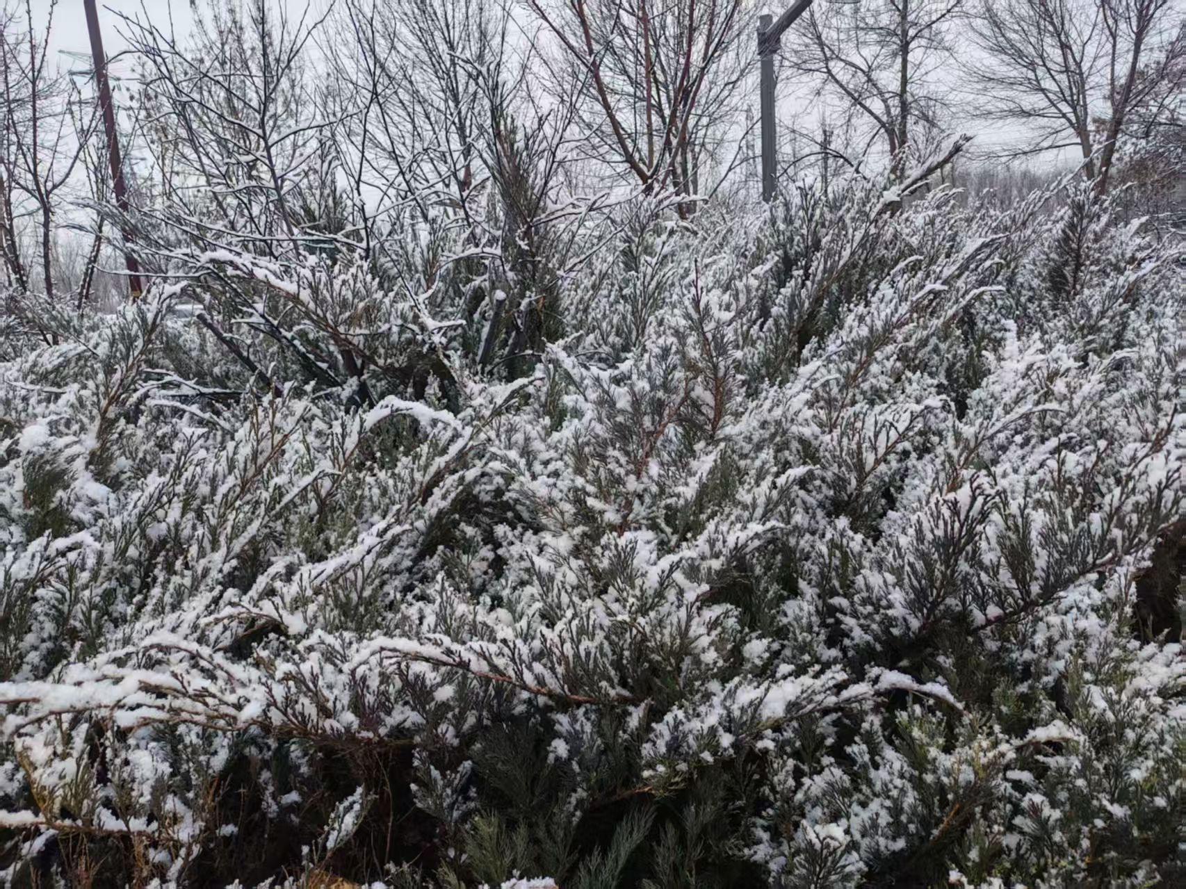 石景山区的晨练市民,一早便邂逅了这份惊喜。公园里、道路旁的绿化带中,树木草木的枝桠顶端,都轻覆着一层薄薄的白雪,清灵又雅致。