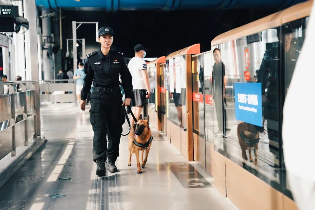 后来,沈秀丽迎来了警犬宝宝“耶鲁”,她经常带着“耶鲁”对地铁站内和周边进行安全检查,对死角、隐蔽处进行隐患排查。在一次活动前的巡逻中,“耶鲁”在隐蔽处发现了隐患,随行民警立即进行了妥善处理,保障了城市轨道的安全运行。