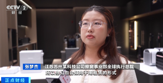 江苏苏州某科技公司擦窗事业部全球执行总裁 张梦杰:很多家庭可能一年只用一两次,所以他们也会倾向于用租赁的形式。租赁板块上线一个月之后,搜索量已经达到10万人次。