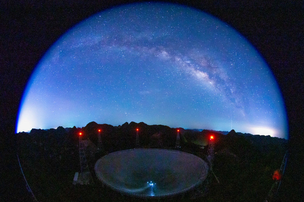 星空下的“中国天眼”(维护保养期间拍摄)。新华社记者 欧东衢 摄