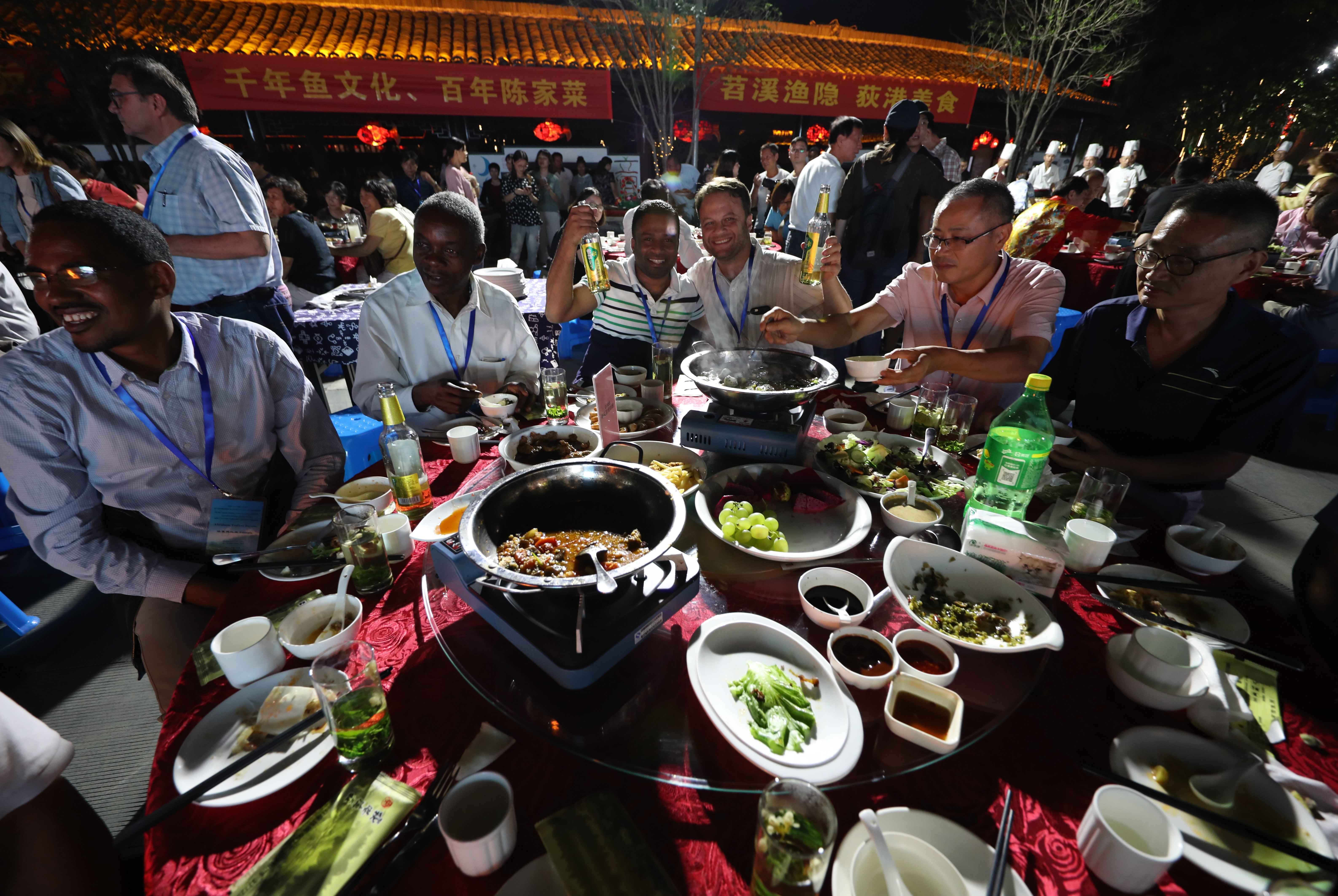 来自国际友人和当地村民一起品尝鱼汤饭,体验丰收的喜悦。
