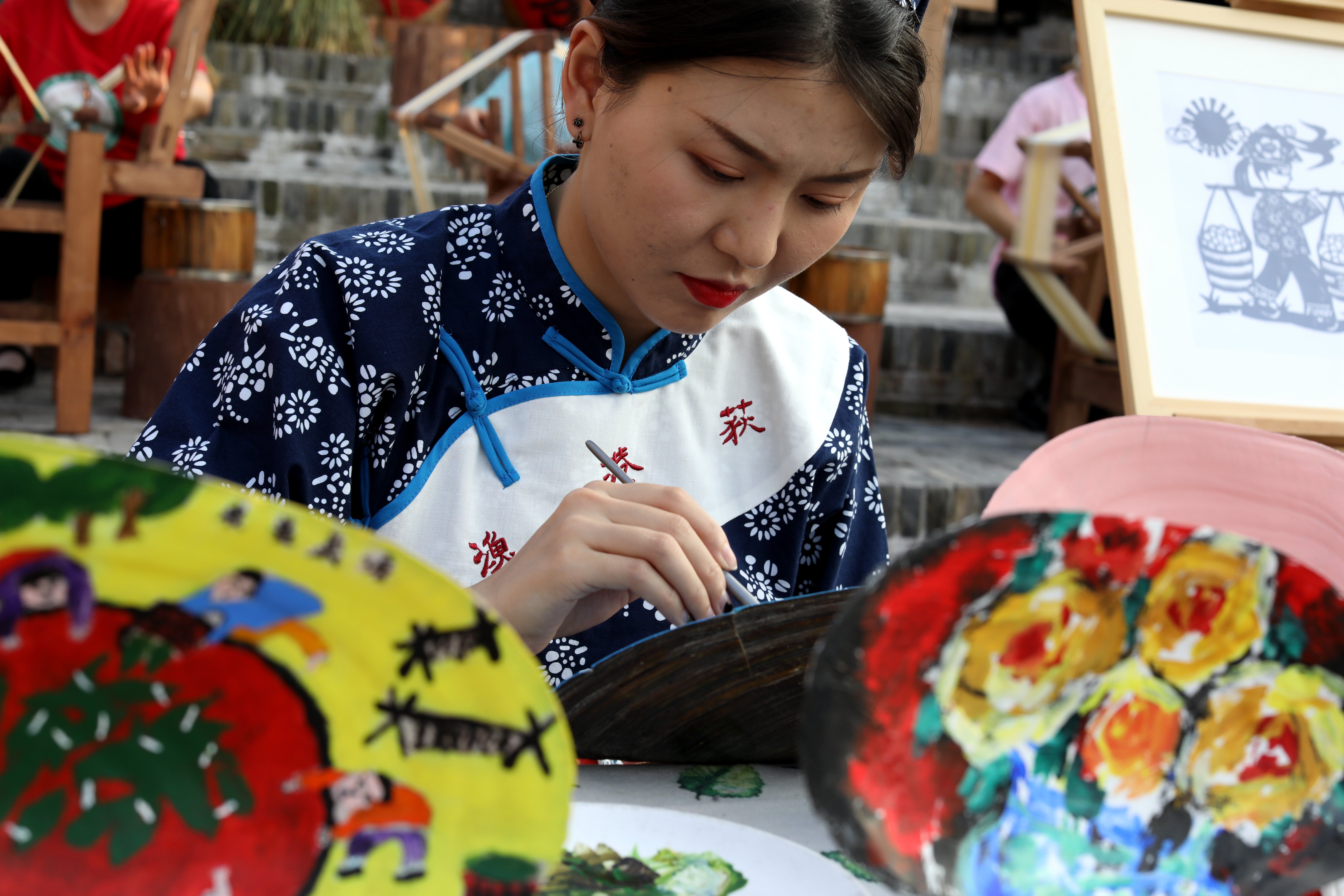 这是当地村民在蚌壳上创作绘画。