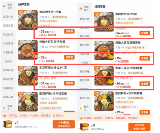 今天中午,笔者和同事做了一个小实验。两人同时打开某外卖闪送平台,设置同一个送达目的地,然后随意选取三家餐馆,选择同一款价格在20-40元区间的菜品,看看购买价格是否一致。
