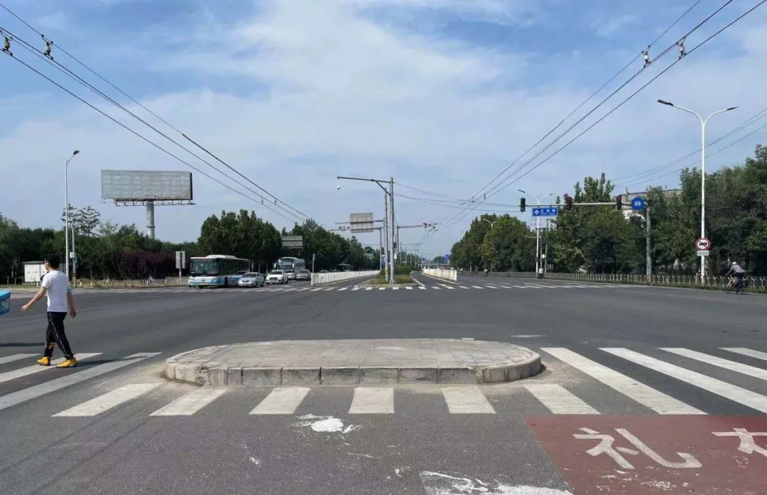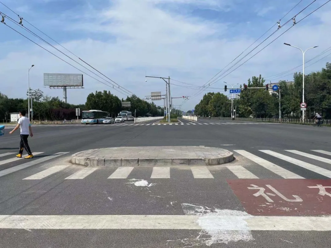 十字路的人行道上的安全岛/一铭摄公路分局:已现场勘查并制定修改方案这名工作人员进一步表示,他会将问题再次上报,但回龙观大队主要负责附近路面上的交通事故,附近路面设施修复问题由北京市交通委员会昌平公路分局负责。