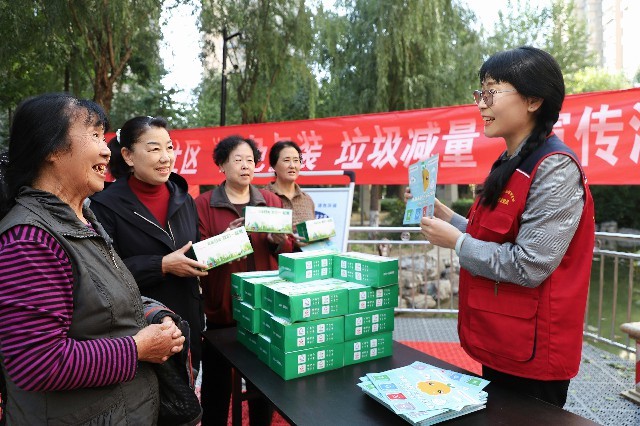 在活动现场,环保志愿者通过设立咨询台、垃圾分类展板、发放垃圾分类宣传手册的形式向广大群众普及“绿色包装垃圾减量”等垃圾分类知识;现场解答群众关于“绿色包装垃圾减量”方面的相关问题;社区网格员和志愿者主动向广大群众讲解垃圾分类宣传手册里的内容,进一步增长群众垃圾分类的知识,提升文明素养,鼓励群众积极参与到垃圾分类工作中来。