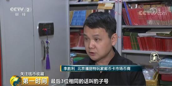 北京福丽特玩家邮币卡市场币商 李胜利:最后3位相同叫豹子号,十张的话,价格可能翻倍,目前这种十张市场价在4000左右,它属于百里挑一,也就是要把这组完成,最少要在1000张里面挑出这10张。