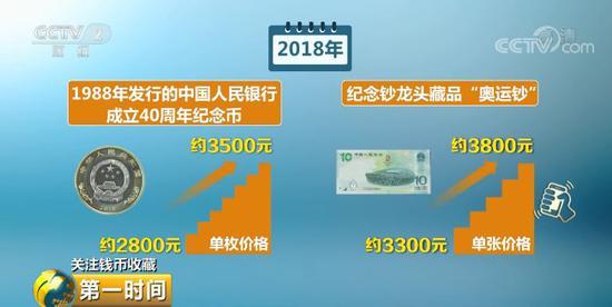 2018年,钱币收藏市场上纪念币的领头产品--1988年发行的中国人民银行成立40周年纪念币,单枚价格从约2800元上涨到约3500元;纪念钞龙头藏品"奥运钞"的价格,从每张约3300元上涨到约3800元。此次70周年纪念钞的发行对"龙钞"的价格也有部分拉动作用。