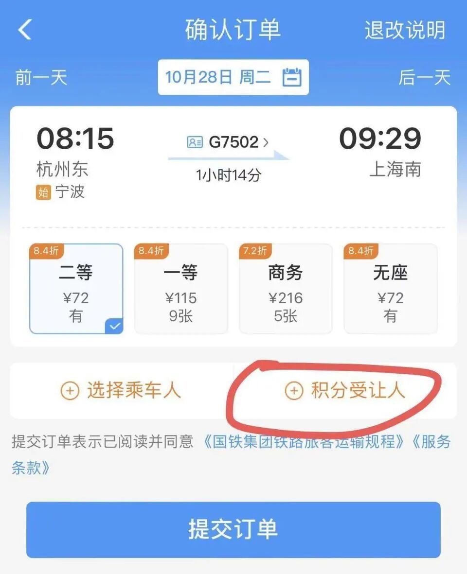 同时,此次会员积分新增列车座位升席功能,也就是说,明天起,会员本人可使用积分在列车上兑换办理原车票未乘区间内的任意区间座位的升席。