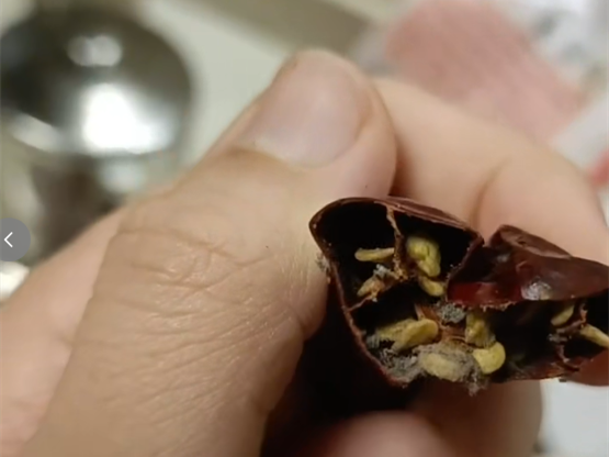 李女士发现的这种“隐形霉变”的干货,不是个例。长江云新闻记者走访了多家商超的干货柜台,发现类似隐患并不少见。在部分售卖干辣椒、花生、瓜子的柜台前,记者随机挑选了几款外观无明显异常的产品,掰开后发现,有2款干辣椒内部带有霉斑,1款花生散发着轻微霉味,这些问题产品均混杂在正常商品中售卖,极易被消费者忽略。