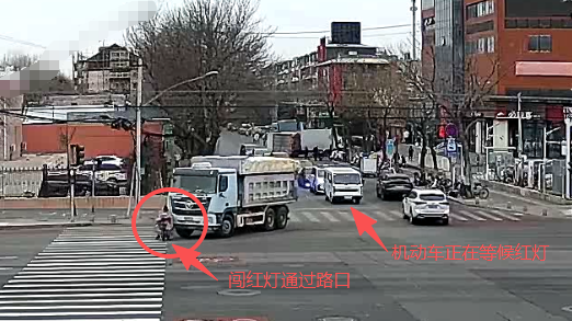 2026年1月17日上午9点多,在丰台区龙和路,一辆电动自行车由西向东闯红灯通过路口,与由西向南右转的重型货车发生事故,造成骑车人当场身亡。后经调查,事发时骑车人并未佩戴安全头盔。