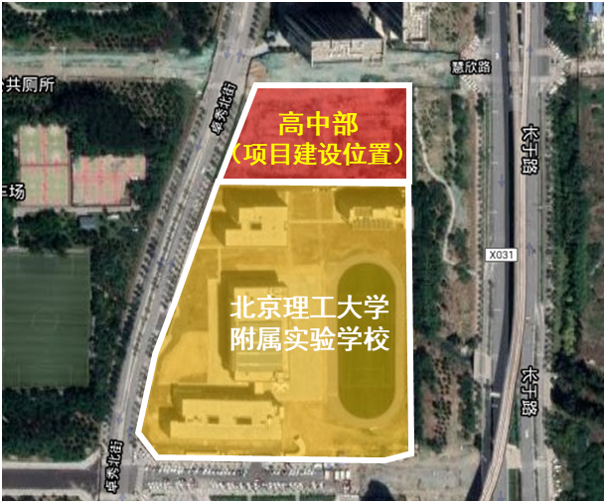 北理工附属实验学校高中部教学楼建设项目位于学校北侧,建设用地约1.09公顷,建筑面积约25230.03平方米。规划36班,提供高中学位1620个,预计2024年7月完工,2024年9月投入使用。