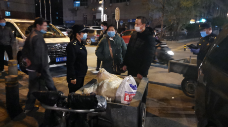 “垃圾都是日产日清的,预感他们今晚还会出现!”根据走访附近群众和分析监控视频,侯晓燕决定组织人手于当晚8时在附近蹲守,抓现行。果不其然,当晚8点10分,一男一女骑着两辆电动三轮车出现在城管队员的视线里。其中一辆车的后斗里装着几个满满的塑料袋。坐在执法车前排的城管队员敏锐的打开了执法记录仪。