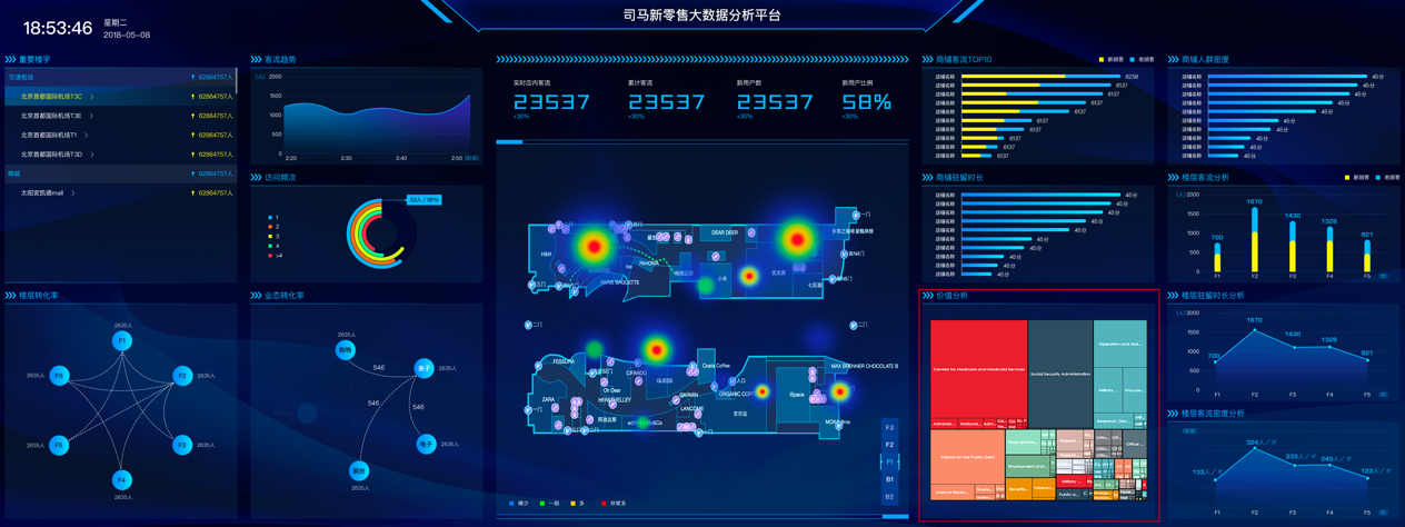 5G城市大脑:实时演示游客趋势、景区游客排行、游客来源等,用大数据和热力图分析的形式展示移动技术。