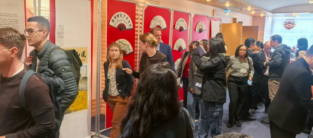 粮农组织大厦大厅各国国旗庄严悬挂,大小会议室里论坛纷纷举办,不同语言、不同肤色的人们在此相聚,人类命运共同体的理念在此彰显。《粮农天下.墨绘农耕》——丁杰梯田主题中国画作品展上,画家丁杰与各国嘉宾交流创作体会。此次展览以扇面形式为主,展现中国传统书画。龙脊、哈尼等梯田景色与“绿水青山就是金山银山”的书法等作品吸引了众多好奇的目光,各国嘉宾赞不绝口。画家表示,传播中国文化,发出中国声音,是文艺工作者的天职。通过此次展览,更加坚定了画梯田、书农耕、颂粮安的信念,希望用画笔唤起更多人守护粮食安全的意识。