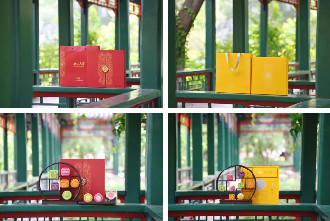 北京大学带来了两款月饼礼盒,红色礼盒名为“燕园皓月”,黄色礼盒名为“燕园秋月”。月饼均以北大校园风景、标志性元素为样:校徽、西门、大学堂、未名湖、博雅塔……每一枚都饱含燕园的深情。