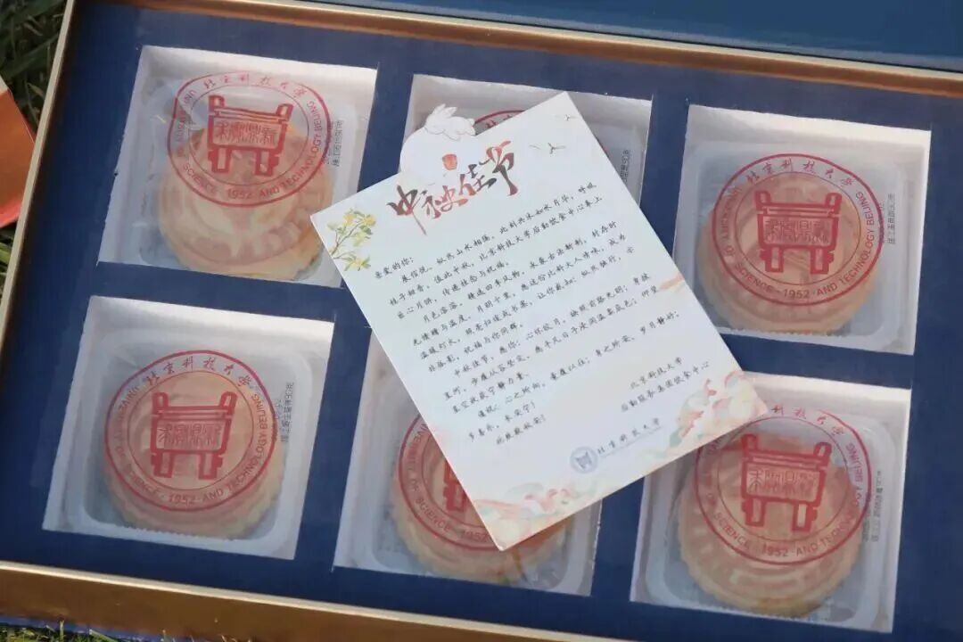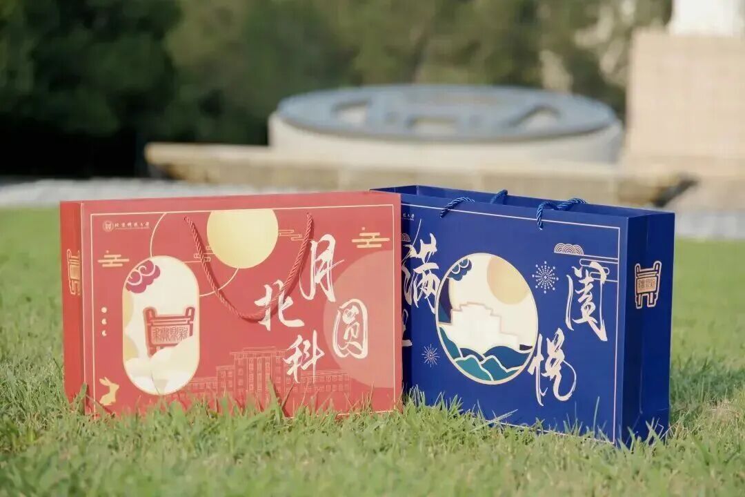 北京科技大学精心定制了“月圆北科”和“阖悦满井”两款礼盒。“月圆北科”礼盒以金红色为主调,封面主楼、满月和北科鼎交相辉映,礼盒内的红酒、手打茉莉、紫朗姆葡萄、生椰拿铁等六种特色桃山皮月饼,六色六香,口口生津。