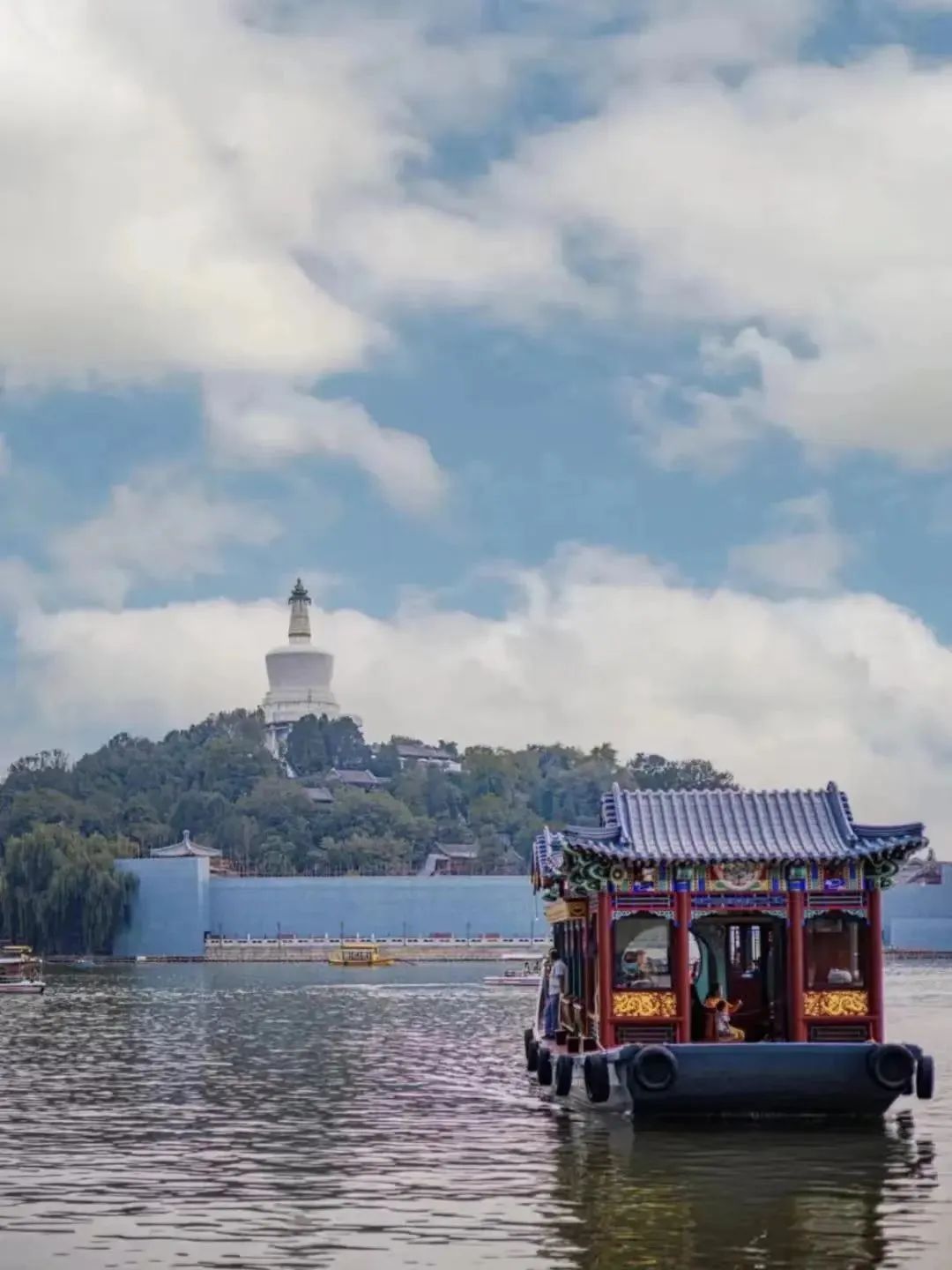 “海面倒映着美丽的白塔,四周环绕着绿树红墙......"这首歌就是在北海公园划船的真实写照,许多人来到了北海,不仅是划船,也是为了身临其境地还原唱《让我们荡起双桨》这首歌时的心境。