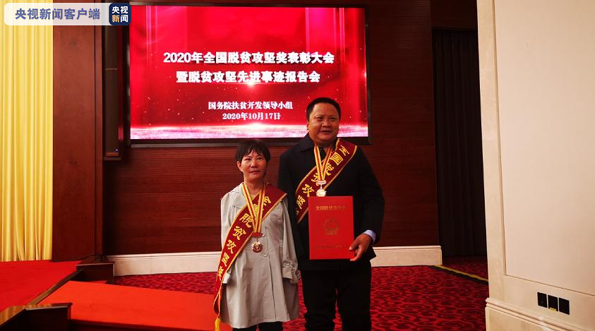 今天(17日)是我国第7个扶贫日,今天上午,国务院扶贫开发领导小组在北京召开2020年全国脱贫攻坚奖表彰大会暨首场脱贫攻坚先进事迹报告会,对今年获奖的先进集体和先进个人进行隆重表彰。来自云南省昆明市东川区乌龙镇坪子村芭蕉箐小组的张顺东、李国秀夫妇,凭借“一只手+两条腿”相依为命、自强不息的战贫脱贫事迹,荣获2020年全国脱贫攻坚奖奋进奖。