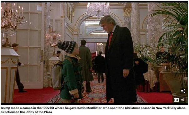 (特朗普在电影《小鬼当家2》客串的画面。图源:英国《每日邮报》。)