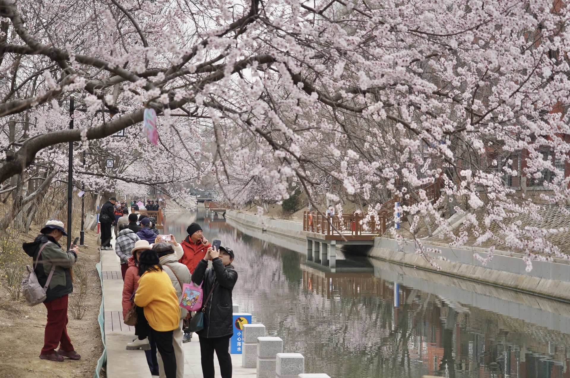 城市滨水空间同样春意盎然。朝阳区十里堡二道沟沿岸,绵延数百米的山桃花形成“粉色花廊”,倒映碧水之上,成为市民踏青打卡的热门点位。2024年年底经过改造后,396米河道已完成焕新,还建成6处亲水平台、2处观景平台、330米的滨水栈道,搭配绿植景观、休息座椅、照明、指引标识等,打造了安全多样的亲水赏景空间,切实提升了滨水空间品质。
