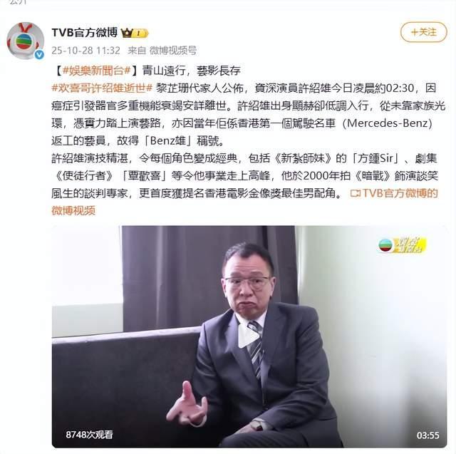 TVB官方发文悼念许绍雄:青山远行,艺影长存_北京时间