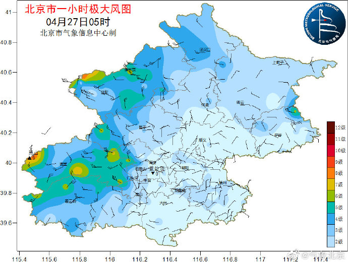北京市市气象台27日6时发布:今天白天有沙尘,北风二级转四五级(阵风七级左右),最高气温23℃;夜间晴间多云,北风二三级,最低气温11℃。大风蓝色和沙尘蓝色预警中,今天白天风力逐渐加大,伴有沙尘,尽量减少户外活动,外出做好健康防护,注意防风防尘。