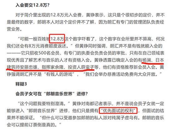 如果曾是郎朗私人会所"郎汇"的500名会员之一,12.8万元会员费中还包含子女优先面试郎乐的权利,根据《南方都市报》报道,会员有名人杨澜、薛蛮子等。不过,2年后,在"整治会所歪风"的形势下,郎朗中国音乐工作室"官宣",这家斥资千万元打造的私人会所早已转手让人。