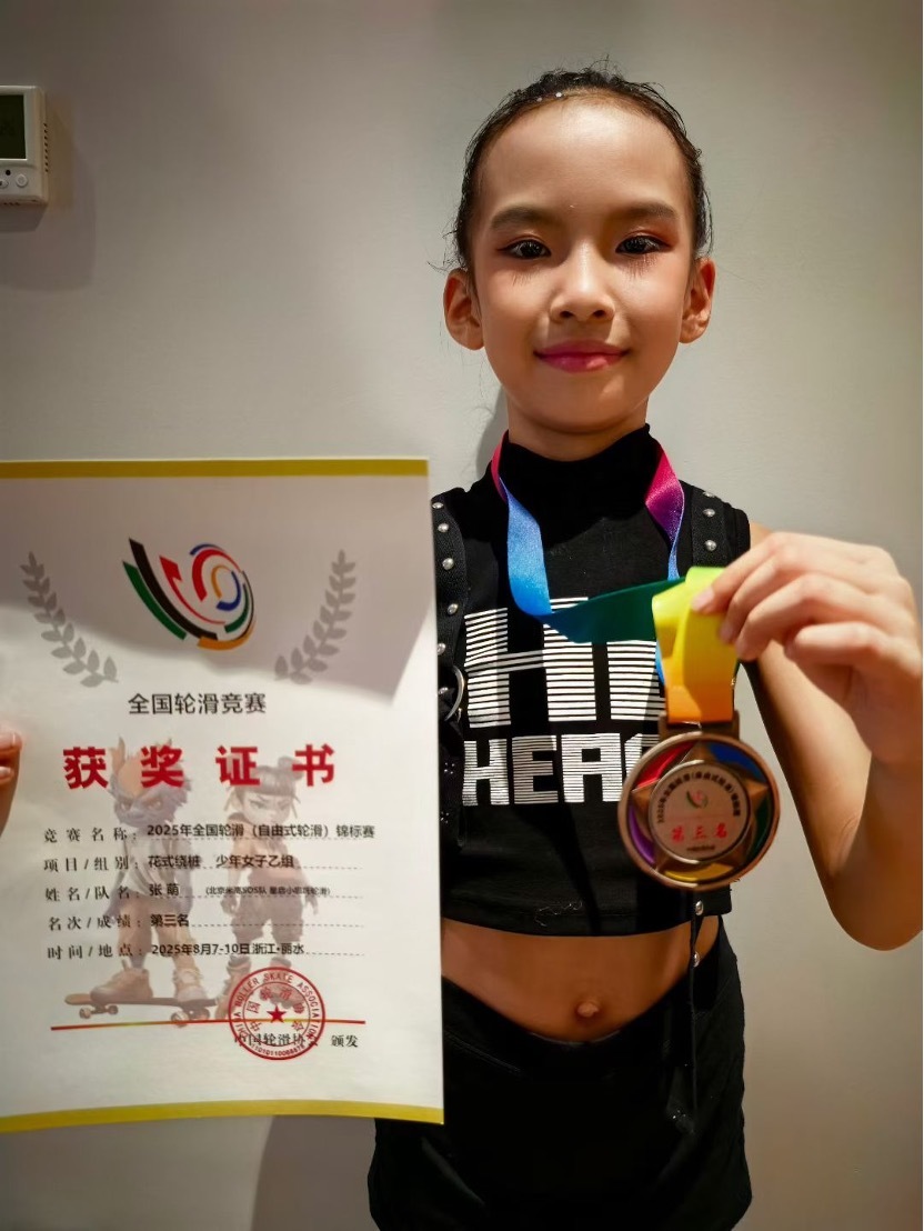 在8月7日率先开赛的2025年全国轮滑(自由式轮滑)锦标赛中,北京米高星启轮滑选手张萌表现亮眼。这位少年女子乙组选手以精准的过桩技术、流畅的滑行姿态和稳定的赛场发挥,从激烈竞争中突围,最终斩获花式绕桩项目季军。作为首次亮相全国大赛的新秀,张萌的获奖不仅是对其长期刻苦训练的肯定,更展现了中国青少年轮滑选手的潜力与风采,为赛事增添一抹青春亮色。