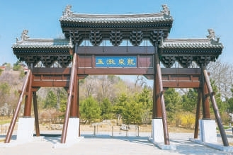 进入公园,首先映入眼帘的是一座古色古香的牌楼,这是仿元代建筑风格建设的楼阁式牌楼,面宽13米,高9.2米。牌楼前刻有“龙泉漱玉”四字,后刻“运河源流”。穿过牌楼进入景区,就正式开启了白浮泉文化之旅。